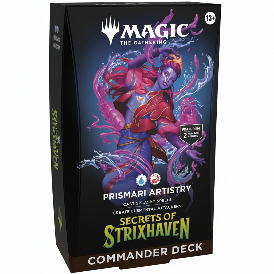 En eksplosjon av kreativitet og elementmagi – Secrets of Strixhaven: Prismari Artistry er et deck som feirer kunst, uttrykk og rå spell‑power slik bare Prismari‑kollegiet kan. Her handler alt om store, fargerike spells, tempo og å forme slagmarken med dramatisk flair. Decket lar deg uttrykke deg gjennom kraftige instants og sorceries, kopiere spells og skape spektakulære øyeblikk som både imponerer og overvelder motstanderne.